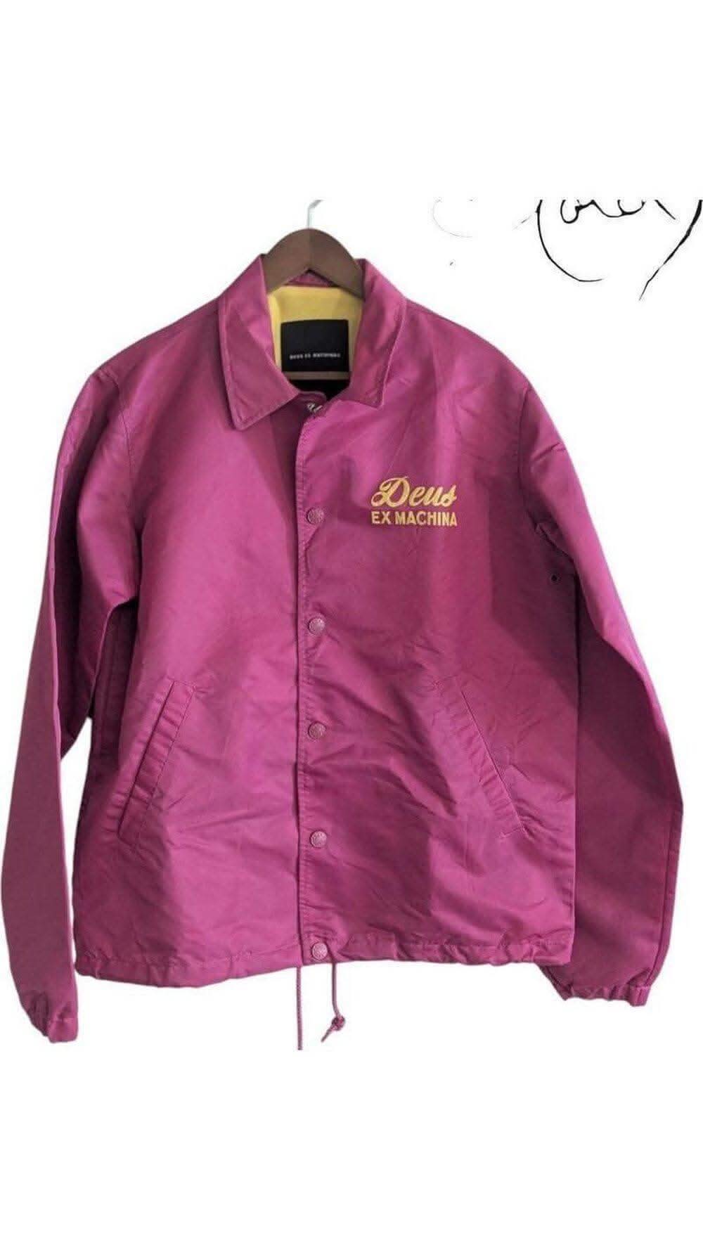 This pink Deus Ex Machina coach jacket will add a pop of colour to your wardrobe. Featuring vibrant yellow embroidery and a Harajuku-inspired design, it combines streetwear vibes with a retro aesthetic.