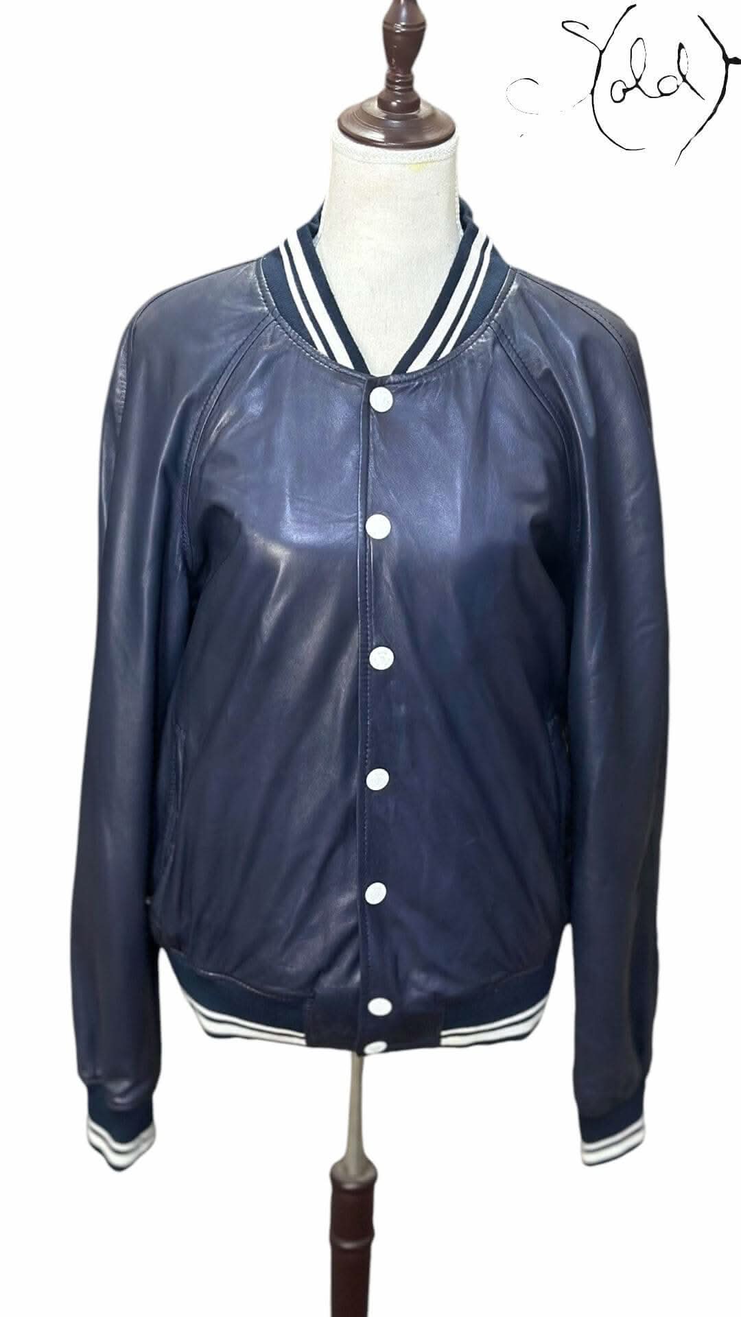 D&G Navy Leather Varsity Jacket – Iconic Sport Luxe | Sold Attire