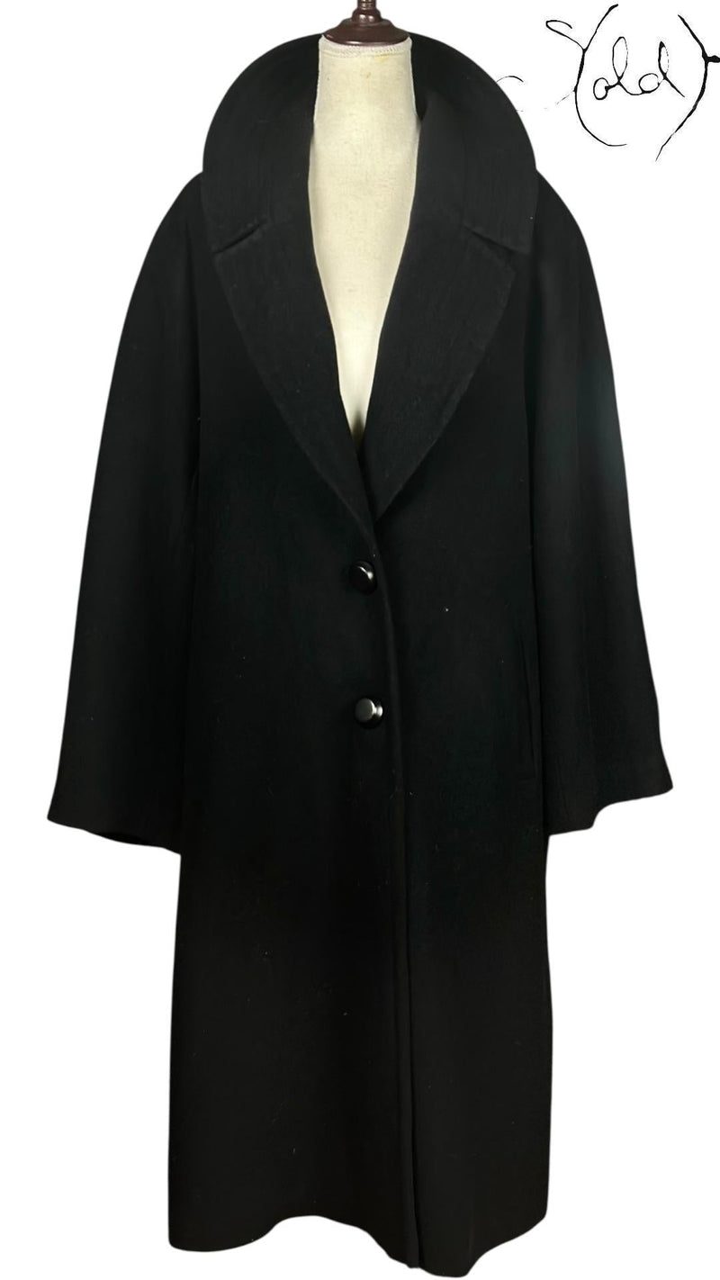 In the late 2010s, Jil Sander continued the house's legacy of radical minimalism, honoring the founder's philosophy: craft over trend, purity over decoration. This single-breasted coat with dramatic kimono sleeves embodies that ethos perfectly. The black 100% lana wool with architectural drape speaks to collectors who understand that true luxury reveals itself in cut, proportion, and negative space.