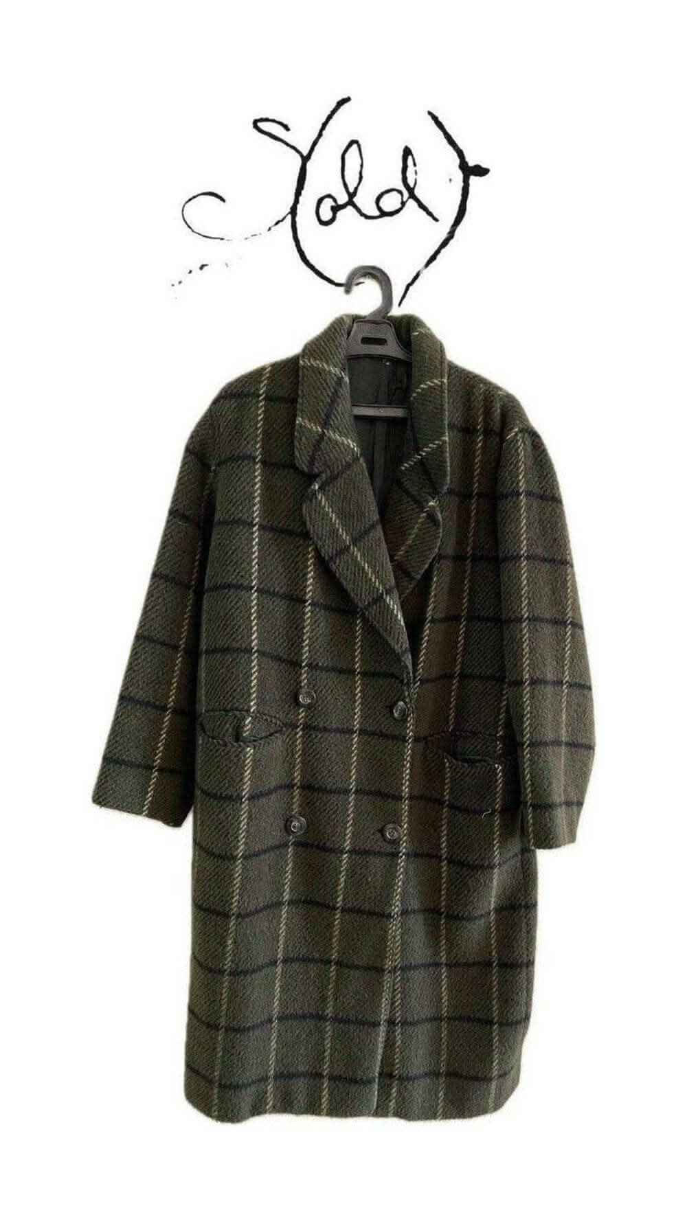 Stay warm in this olive wool coat, blending vintage charm with modern style. Its cozy fit and double-breasted design make chilly days effortlessly chic. Wrap yourself in warmth today!